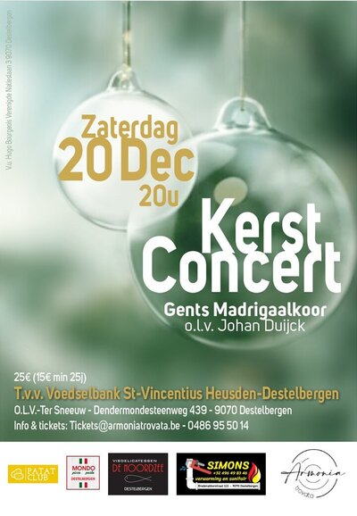 🎫20 december om 20u00 in de O-L-V ter Sneeuwkerk in Destelbergen. Tickets zijn te verkrijgen via https://www.wicket.be/armoniatrovata